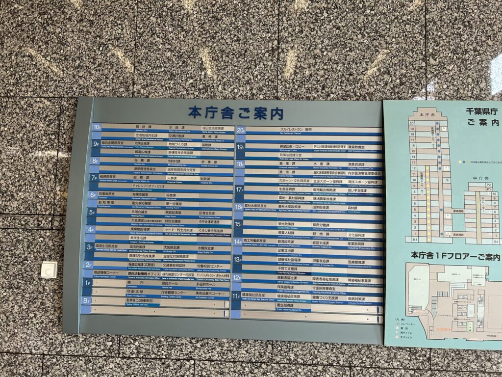 前職では、約9年近く霞ヶ関の国土交通省の建物に通っていたのですが、やはり立場が変わって県庁を訪れるとなるとちょっと緊張しますね。ましてや、お客様の大切な書類を持参していますしね。今回伺ったのは、健康福祉部障害福祉事業課です。千葉県庁の本庁舎、12階にあります。事前にホームページで調べておいたので、意外とスムーズに伺うことができました。そういえば、千葉県民でありながら、千葉県庁へ行ったの初めてですね。