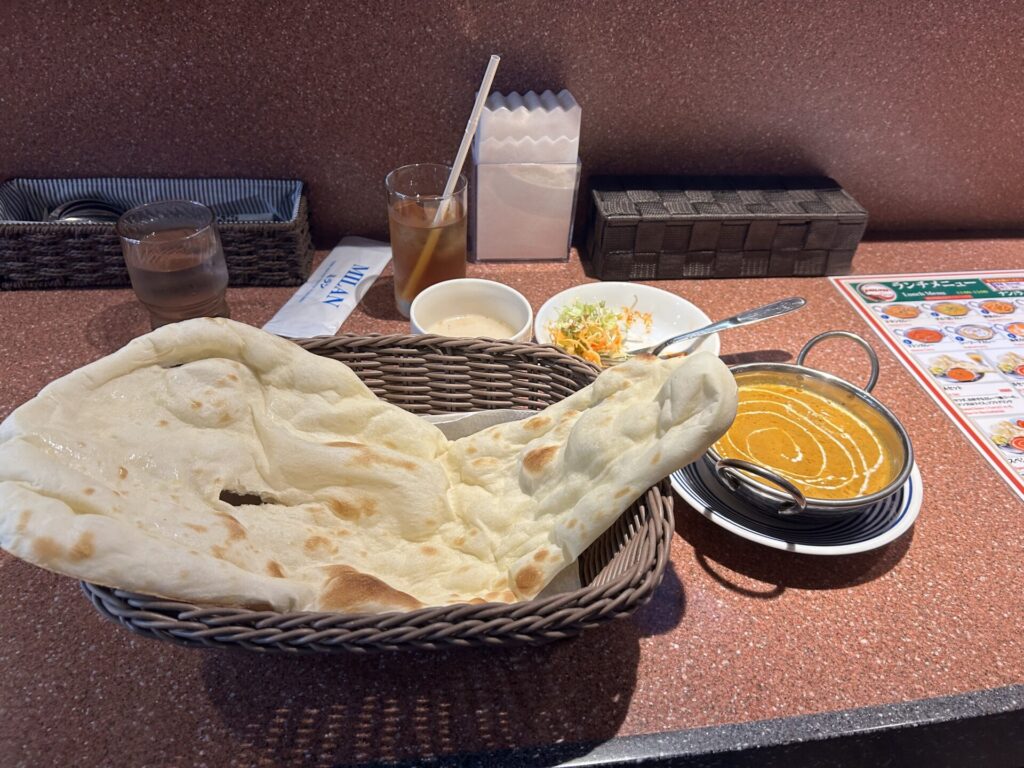 ナンまたはご飯がチョイスできるのですが、いずれもお代わりができます。 そんな訳でナンをお代わりして食べてみました。 ここのナンは、熱々のナンが出てきます。そして美味しいんですよ。 このセットで、880円はお手頃価格ですね。