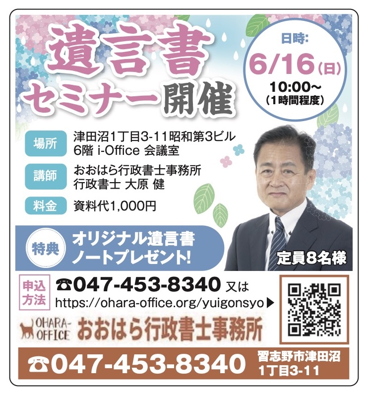 実は、私も去年、第13回小規模事業者持続化補助金の申請を行い採択されました。 事業の内容としては、相続、遺言書関係のチラシ作成とそのポスティング費用、遺言書セミナー開催における広告宣伝費及び会議室借料です。まぁ、販路開拓等の取組ですかね。 今月で終了しますが、1月から6月まで、この補助金事業により、先ほど記したチラシ印刷や遺言書セミナーの開催などを実施してきました。 いよいよこの補助金事業最後の遺言書セミナーを6月16日(日)1000から 事務所の会議室で開催します。お近くの方は是非来てください。