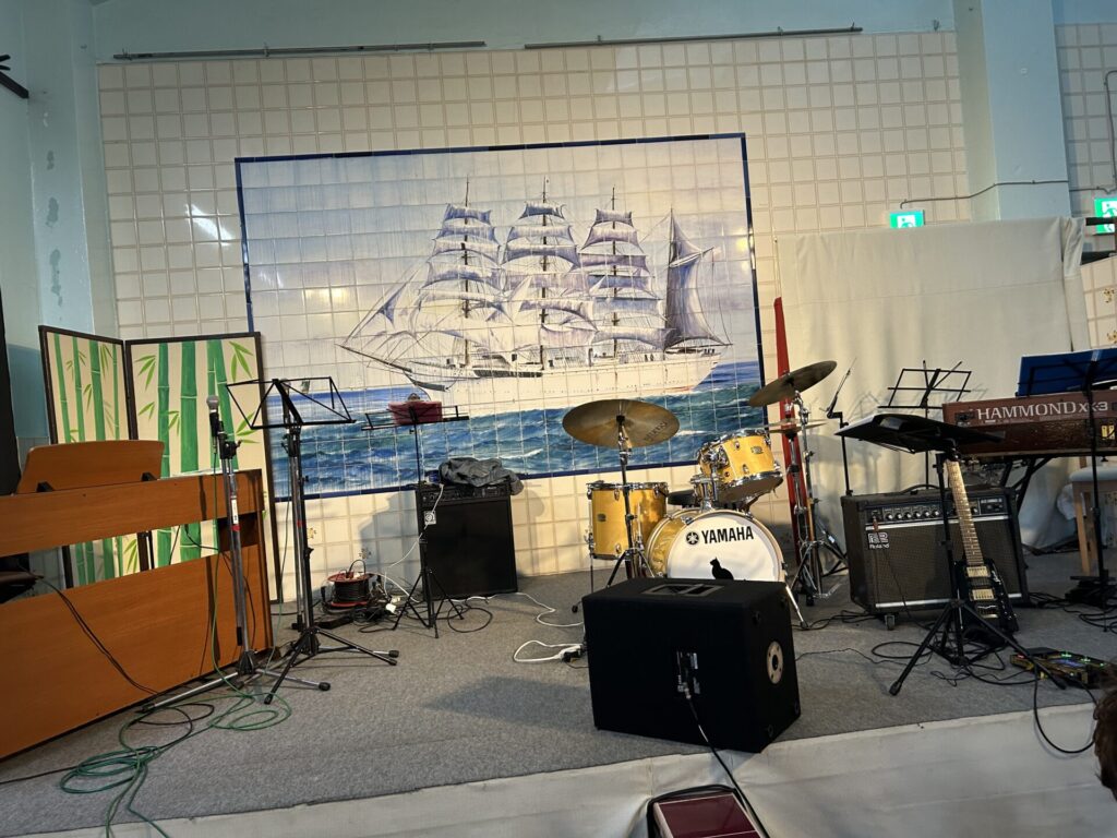 会場は、以前私が所属しているジャズビックバンドLMSのリハーサルでも使用した、元銭湯のみはし湯です。ここの銭湯、東日本大震災で被災し閉店してしまいました。そこで地元の方々がこの建物を有効活用しようということで、音楽ライブや落語などの会場として使用しています。今回は、昔湯船があったであろう所をステージにして、洗い場や脱衣所があった場所を客席として使用していました。