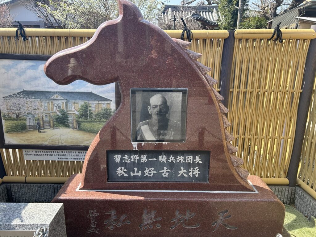ハミングロードの公務員宿舎周辺から京成大久保駅へ向かう途中、坂の上の雲の主人公となった、秋山 好古さんの石碑や、習志野市大久保の八幡公園にある騎兵連隊・旅団司令部跡などを見学しました。歴史ある街ですからね。 習志野市内の史跡巡りの散歩もいいですね。