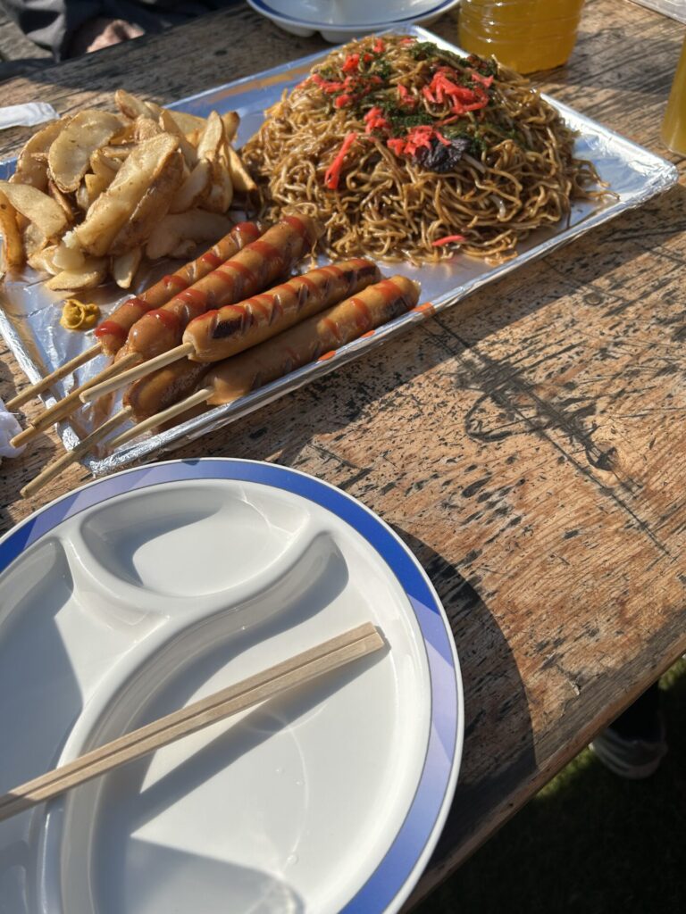 今回の交流会は、ふる里学舎の市原本部にお世話になっている利用者とその家族、そして職員さんが参加するイベントです。お昼時にバーベキューを楽しみながら、利用者、家族そして職員さんが交流するという企画です。私も、2週間ぶりに息子と会うことができましたし、また家族会の方々にもお会いし、色々お話させていただくことができました。息子も大好きな焼きそばや、フライドポテト、焼そばを沢山食べて満足気にしてました。料理は、全てふる里学舎市原の厨房で作ったものだそうです。いつもこんな美味しいものを食べている息子が、羨ましくなりました。